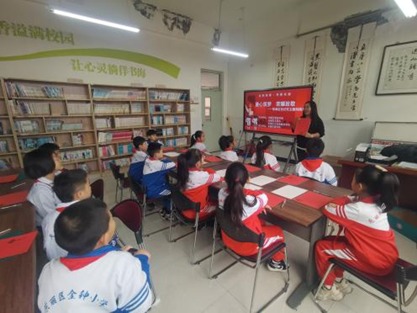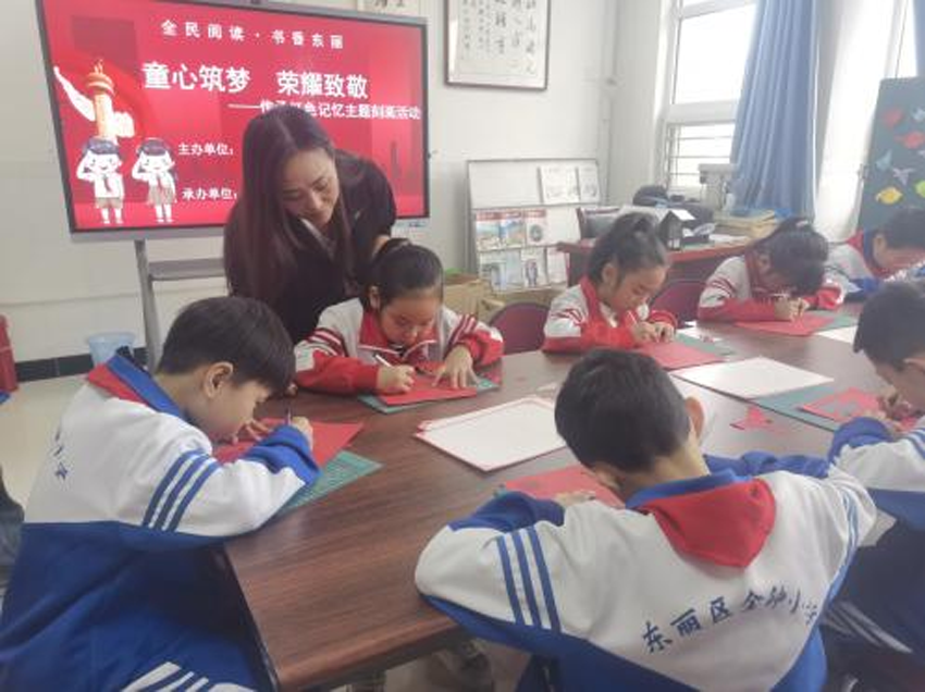 种树者必培其根,种德者必养其心。为树立青少年正确的价值观,培养青少年勇敢、坚强、善良的优秀品质,促进青少年的健康成长。12月20日,东丽区图书馆流动服务车开进金钟小学,为同学们带来全民阅读·书香东丽——“童心筑梦 荣耀致敬”传承红色记忆主题刻画活动。
