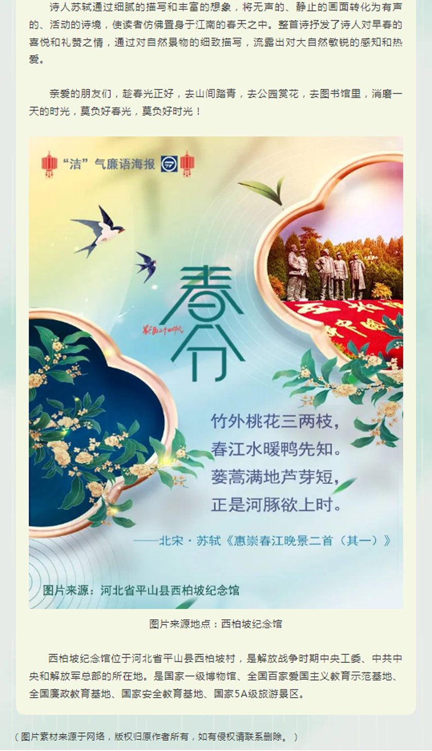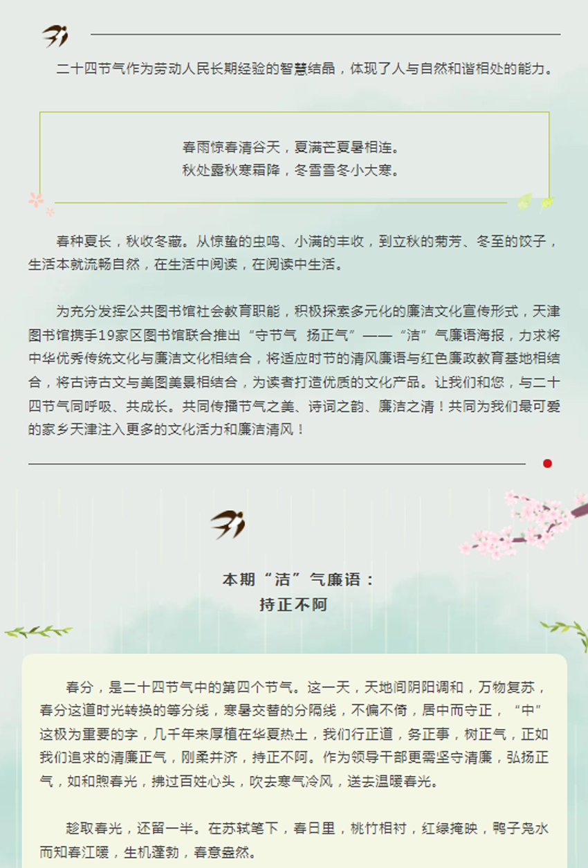 明日春分丨“守节气 扬正气”——“洁”气廉语海报
