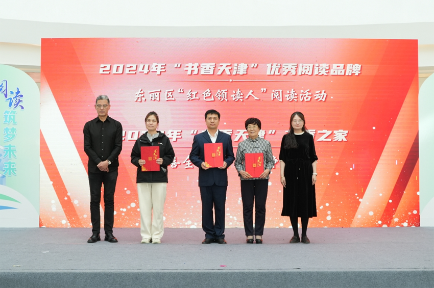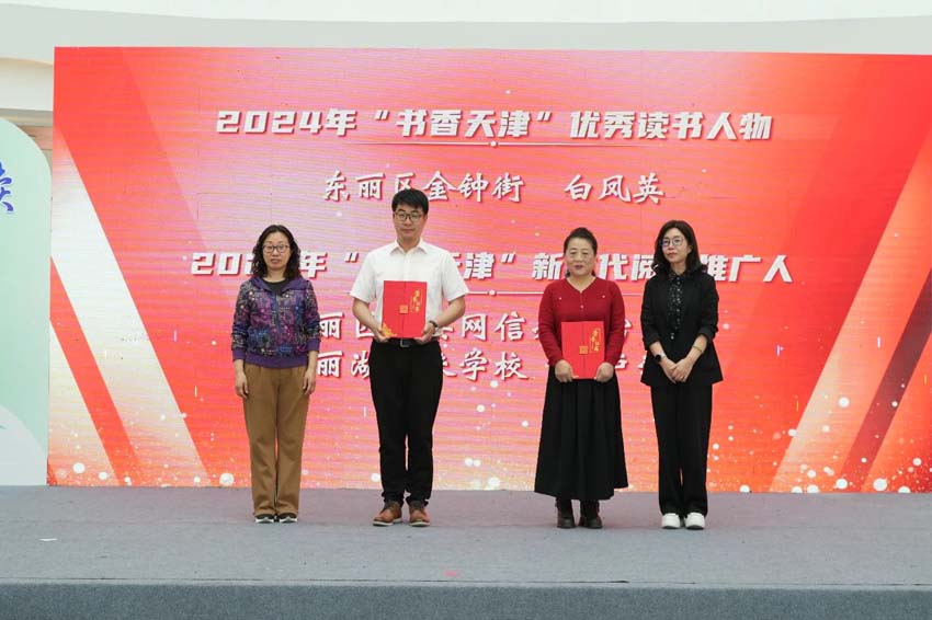 启动仪式现场,中国邮政集团天津市东丽区分公司负责人介绍公益图书展卖活动,并向东丽区5所学校捐赠价值万元的图书。活动中,课本剧《狼牙山五壮士》、集体朗诵《中华孝道》、朗诵《风光无限东丽湖》等文艺展演精彩纷呈,与会领导为东丽区优秀读书人物、新时代阅读推广人、优秀阅读品牌、书香家庭颁奖,并共同启动2025东丽区世界读书日主题活动。