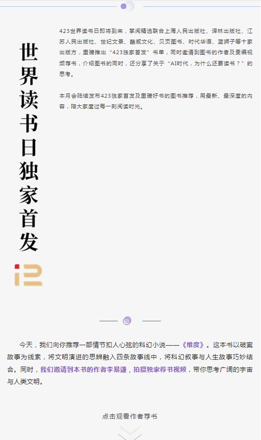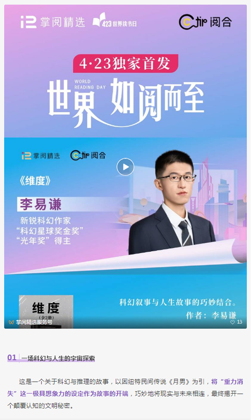 我们的中国梦·文化进万家|东丽区图书馆世界读书日系列活动之423独家首发科幻星球大赛长篇小说冠军《维度》上线,李易谦视频倾情推荐