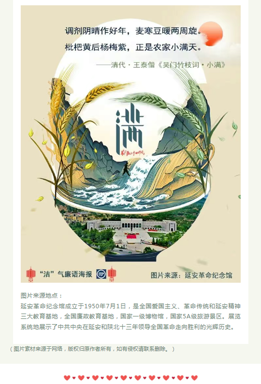 今日小满丨“守节气 扬正气”——“洁”气廉语海报