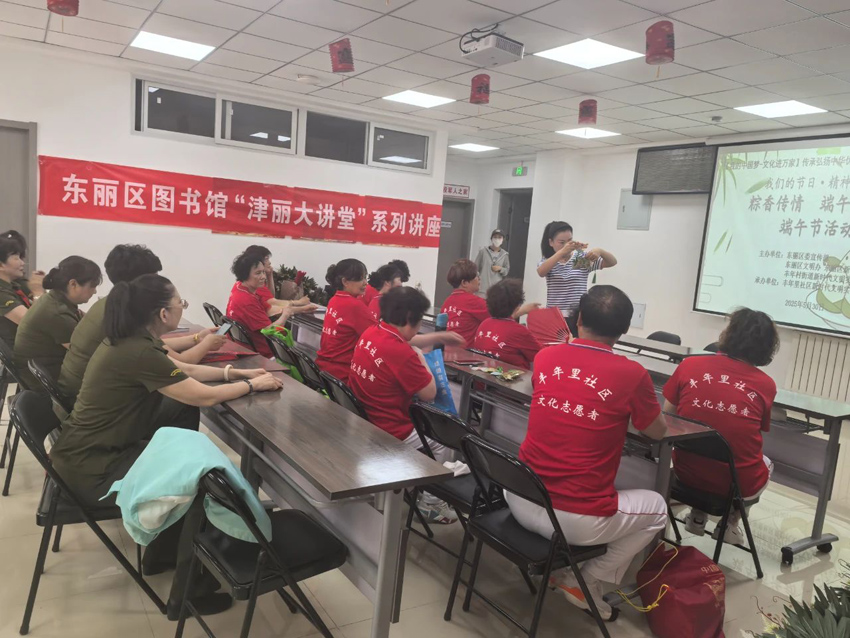 为弘扬中华优秀传统文化,丰富群众节日文化生活,近日东丽区图书馆“津丽大讲堂”走进丰年里社区党群服务中心成功举办“端午传情 尽情放‘粽’”文化公益活动。活动通过民俗讲座、手工体验等形式,吸引了众多名市民参与,营造了浓厚的节日氛围。
