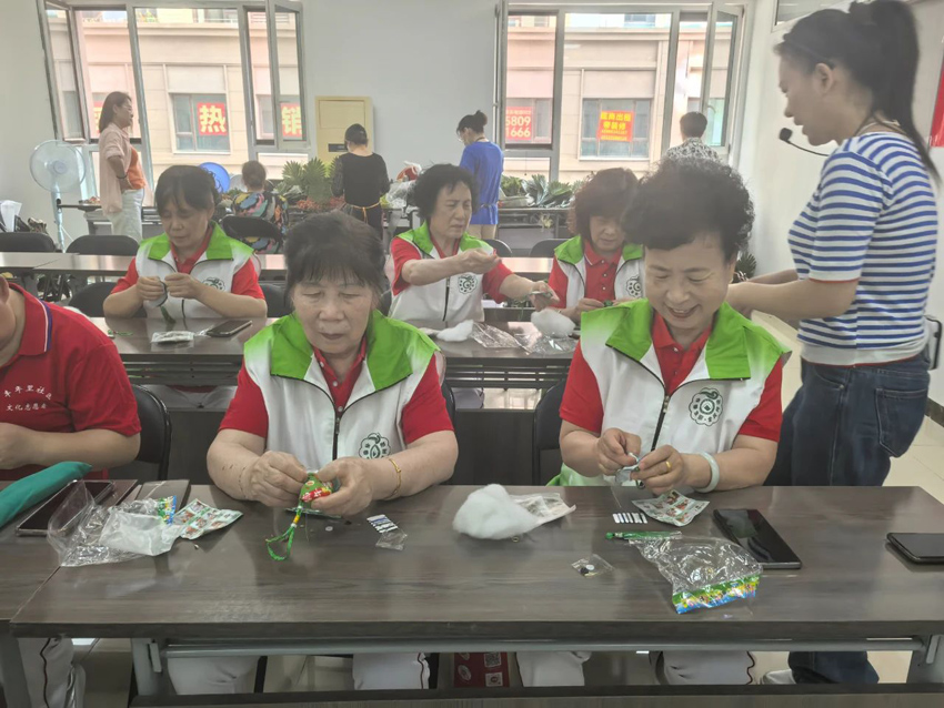 讲座结束后,图书馆精心策划了手工制作环节。在工作人员的指导下,大家共同学习包粽子、编五彩绳、制作艾草香囊。活动现场欢声笑语,粽叶飘香,大家在动手实践中感受到传统节日的独特魅力。