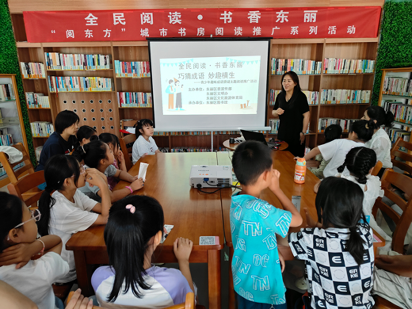 在中华文化的灿烂星河中,成语承载着千年的智慧,凝聚着古人的生活感悟与道德教诲。为激发青少年对中华传统文化的热爱,提升青少年语言素养和思维能力,2025年6月22日,东丽区阅东方金桥城市书房开展了“巧猜成语 妙趣横生”青少年趣味成语猜谜主题阅读推广系列活动,打造了一场别开生面的成语文化盛宴。