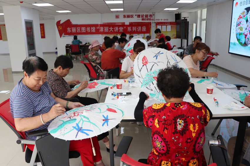 近日,东丽区图书馆“津丽大讲堂”——“落笔生花:妙手绘油纸伞”活动在枫愉园社区开展。此次活动吸引众多读者齐聚一堂,将传统文化的细腻脉络融入笔尖色彩,于轻展的伞面上亲手绘就独一无二的心意之作。