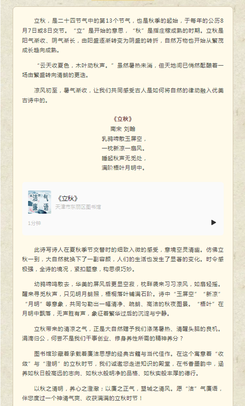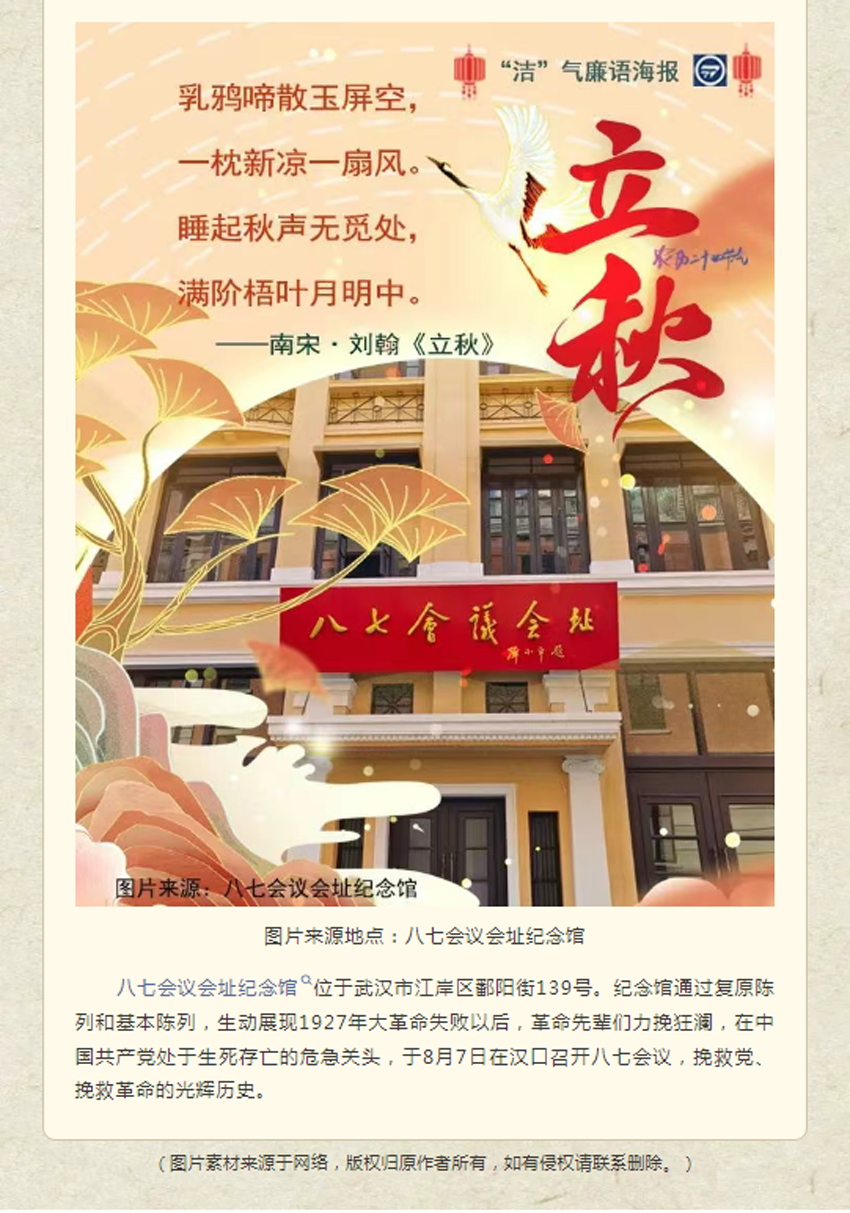 明日立秋丨“守节气 扬正气”——“洁”气廉语海报