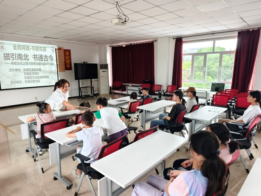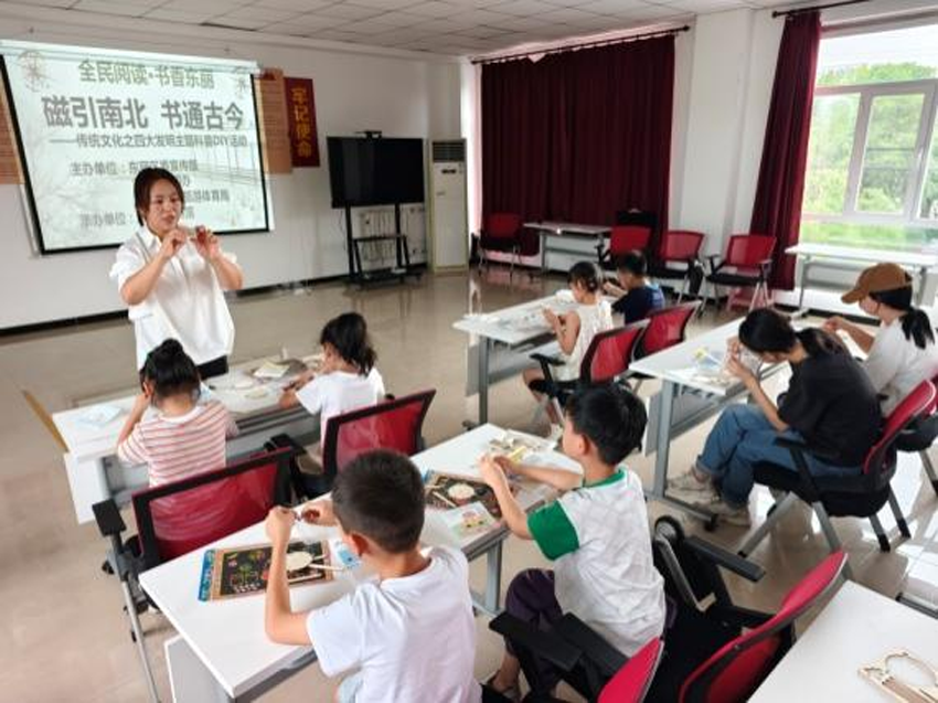 东丽区图书馆流动服务车开展“磁引南北 书通古今”传统文化之四大发明主题科普 DIY 活动