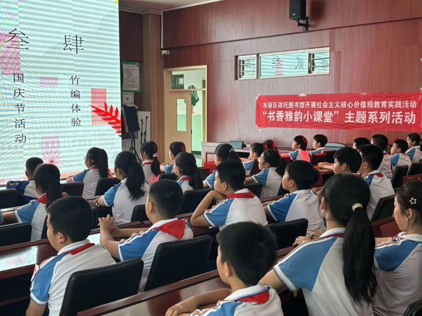 日前,东丽区图书馆在李明庄小学开展了“颂党恩·迎国庆”——竹编体验活动,以竹编技艺为纽带,带领孩子们重温“韦编三绝”的工匠精神,在经纬交错中感悟红色文化与传统技艺的双重魅力。