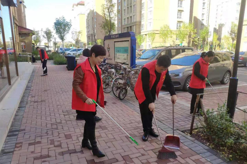 随后,在社区工作人员的带领下,党员同志们手持扫帚、簸箕、捡拾器等工具,充分发挥不怕苦、不怕脏的精神,对小区草坪内及道路两边的垃圾进行清理,较好的改善了社区环境。