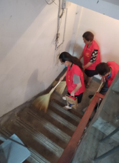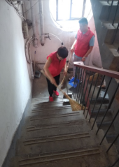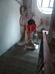 大家冒着酷暑对没有物业的石油楼小区8个楼门逐门、逐层进行了卫生死角生活垃圾的彻底清理。大家干的热火朝天,认真清理着每一个角落,不放过一点垃圾。经过两个多小时的奋战,志愿者们的辛勤劳动换来了社区的卫生整洁。