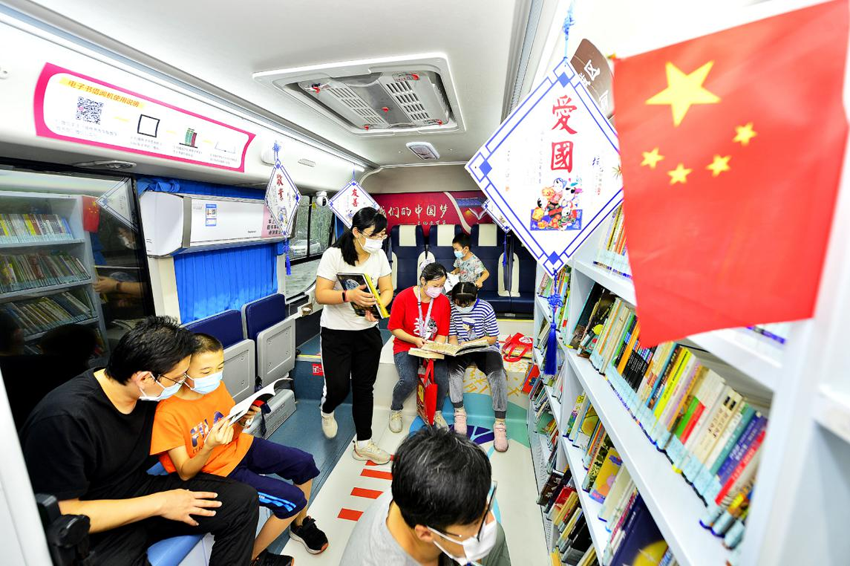 国庆假期,东丽区图书馆流动服务车送书到社区,满足广大社区居民文化生活需求。