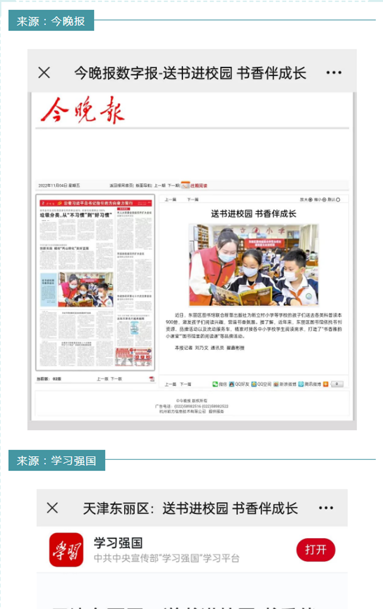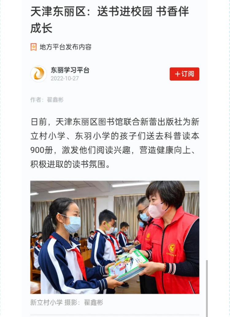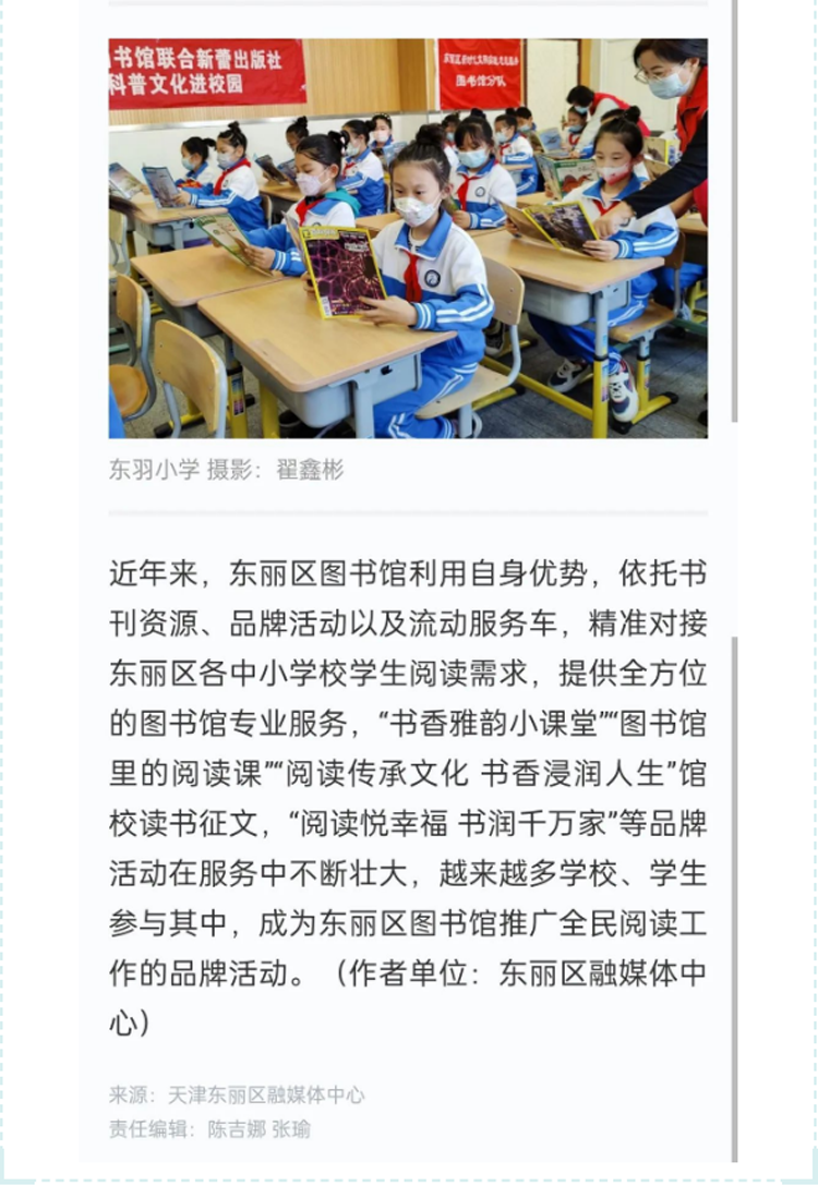 媒体镜头中的东丽区图书馆联合新蕾出版社开展送科普文化进校园活动