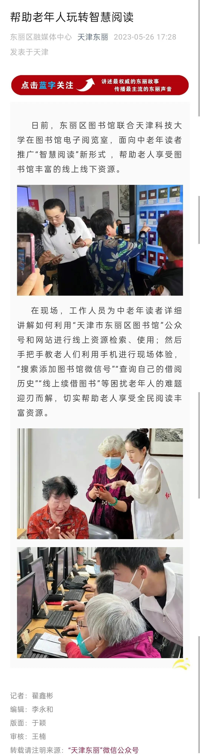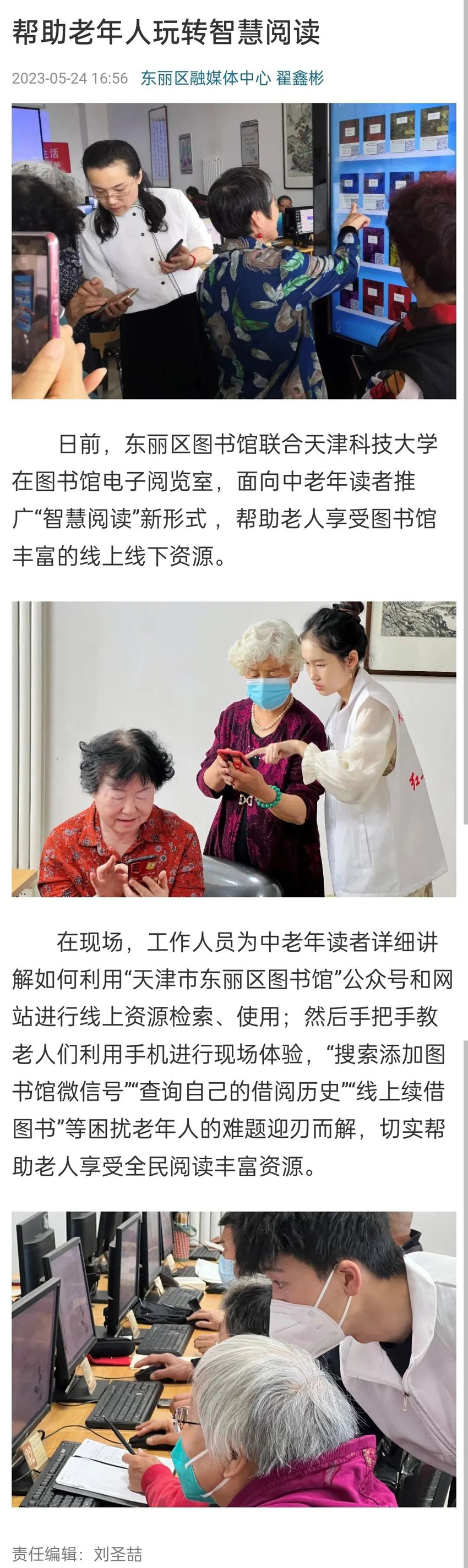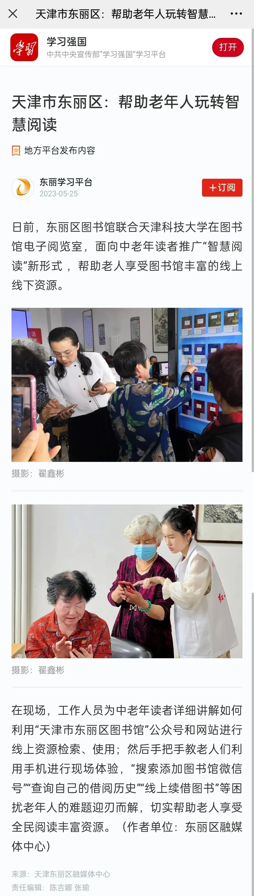 媒体镜头中的东丽区图书馆:帮助老年人玩转智慧阅读