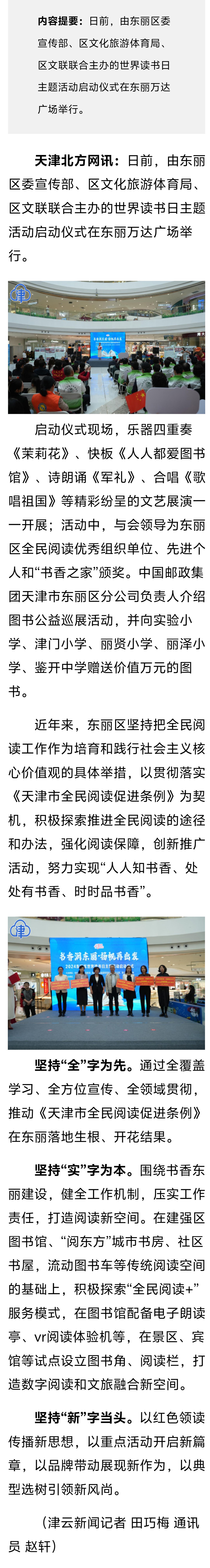 媒体镜头中的“书香润东丽 扬帆再出发” 东丽区世界读书日主题活动启动