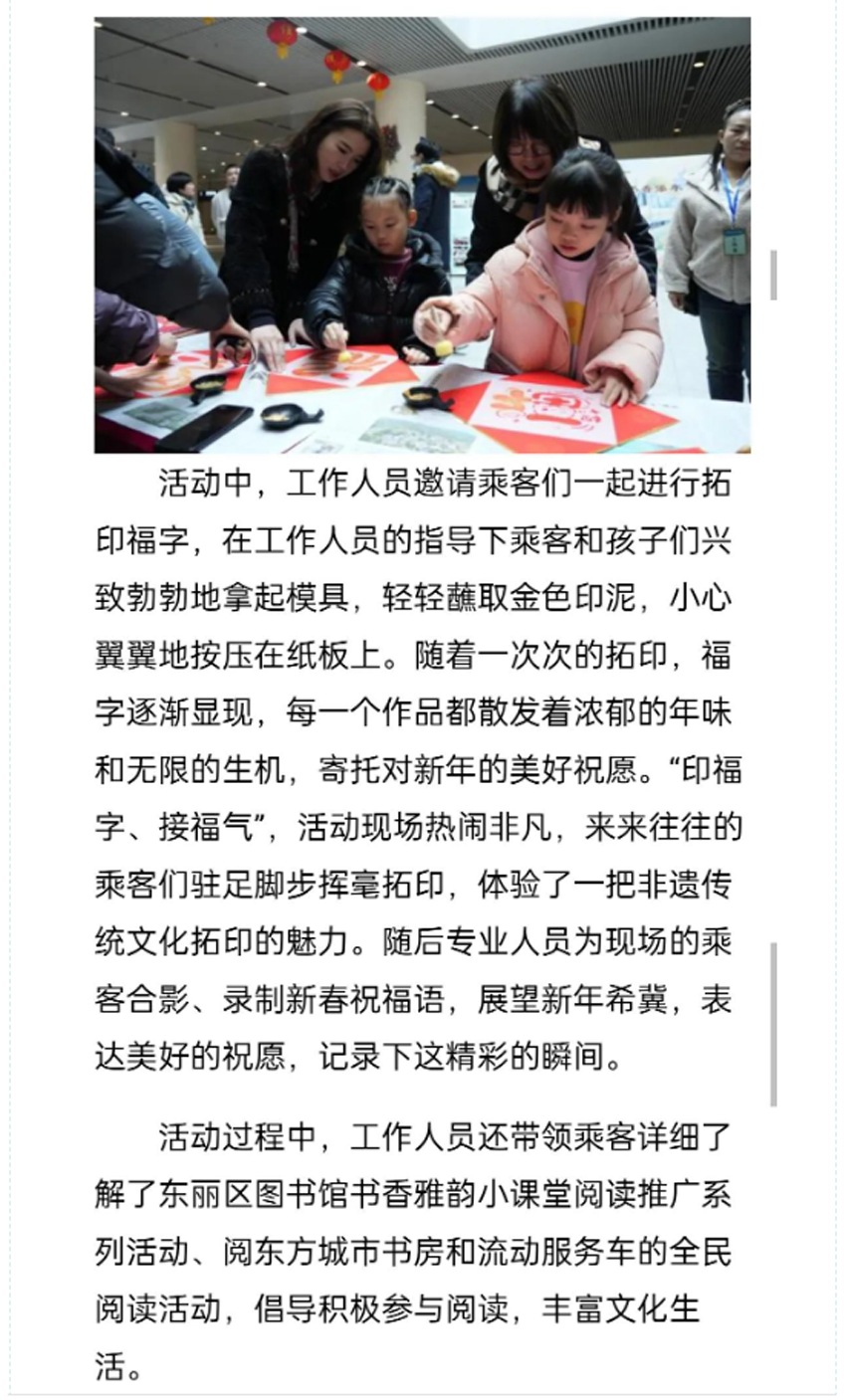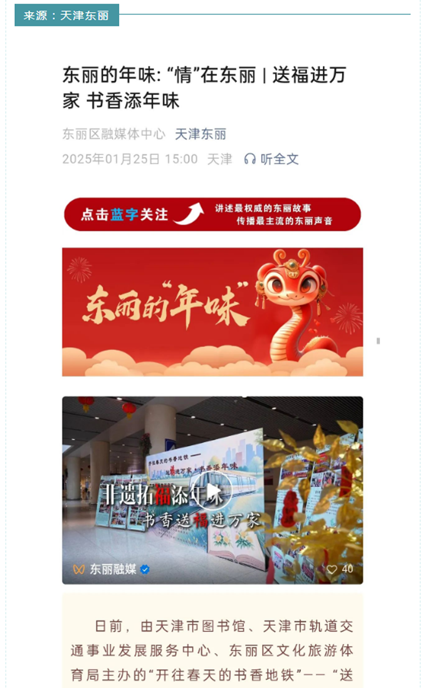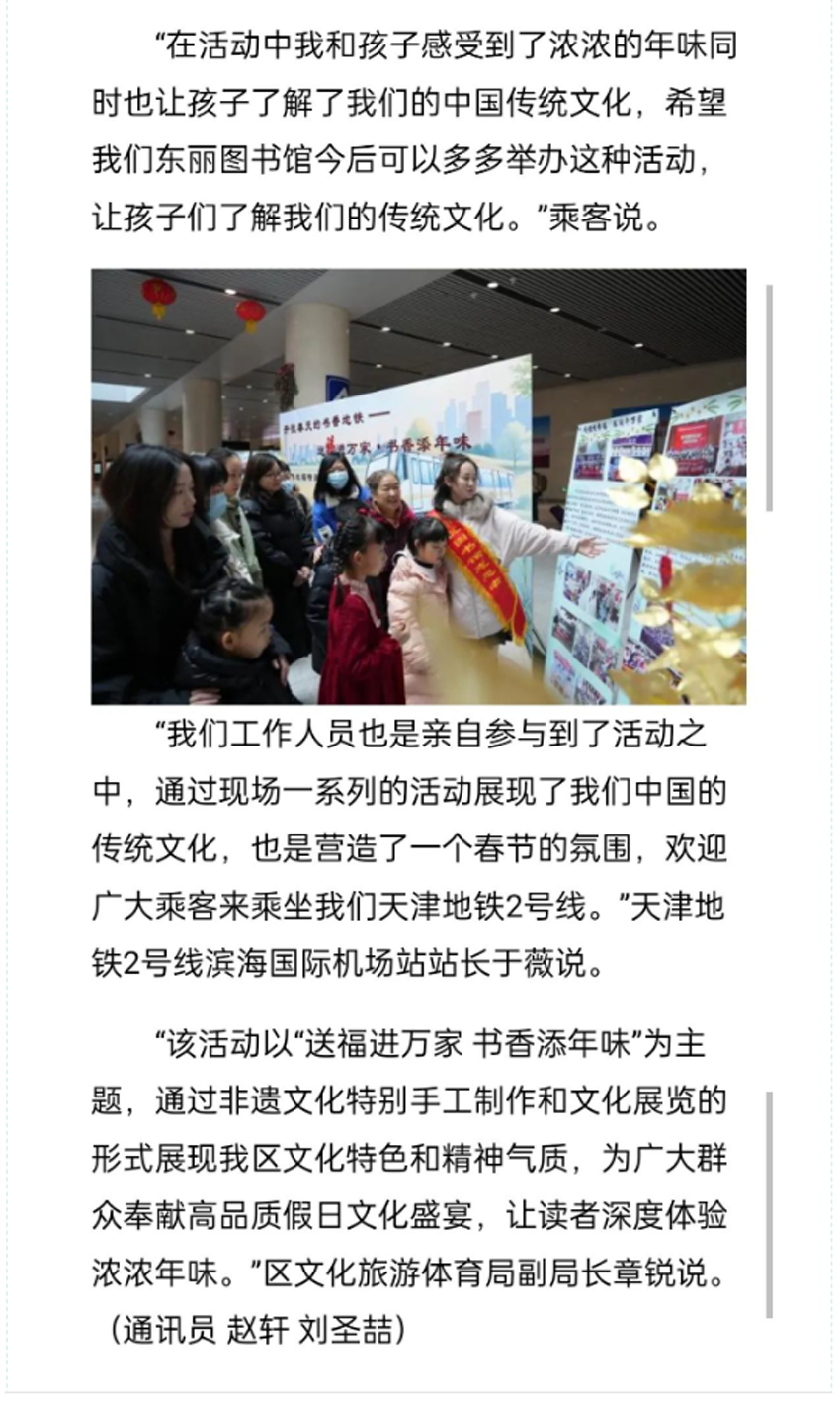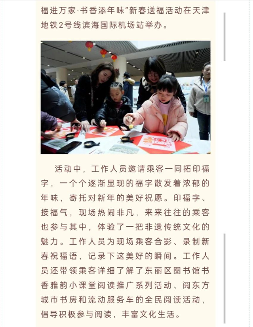 媒体镜头中的东丽区图书馆:“开往春天的书香地铁”—— “送福进万家·书香添年味”新春送福特别活动