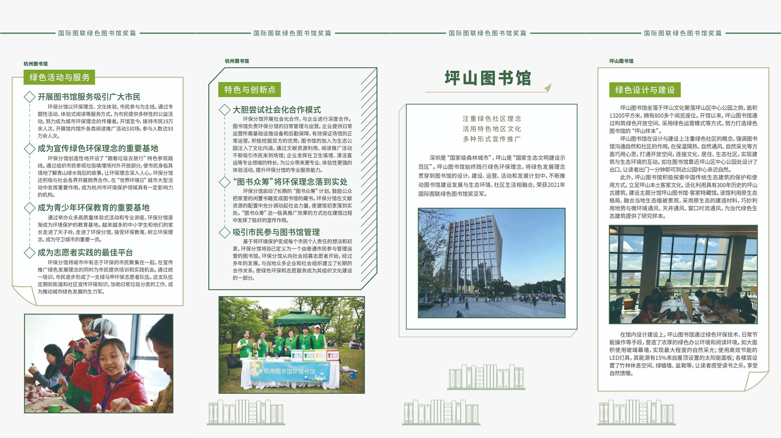 【全民阅读月】凝聚精华 助力推广丨公共图书馆服务宣传推广专题展——国际图联绿色图书馆奖篇